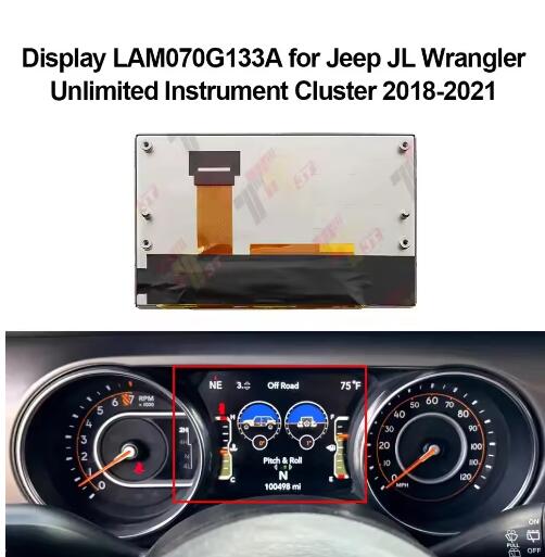 This product is an exclusive instrument cluster display screen designed for Jeep JL Wrangler Unlimited models. Strictly engineered and manufactured in accordance with original factory specifications, it is perfectly compatible with the instrument system of 2018-2021 model years. Equipped with a high-quality JDI display panel and featuring a 7-inch screen, it offers precise color reproduction, clear and stable display, and sensitive response. It can directly replace faulty or aging original screens, quickly restoring the clear display of all instrument information (such as speed, RPM, fuel consumption, warning lights, etc.), ensuring convenient and safe information reading during driving.